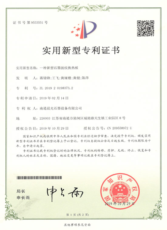 實(shí)用新型專利 :一種新型石墨波紋換熱板 專利號(hào):ZL 2019 2 0198373.2
